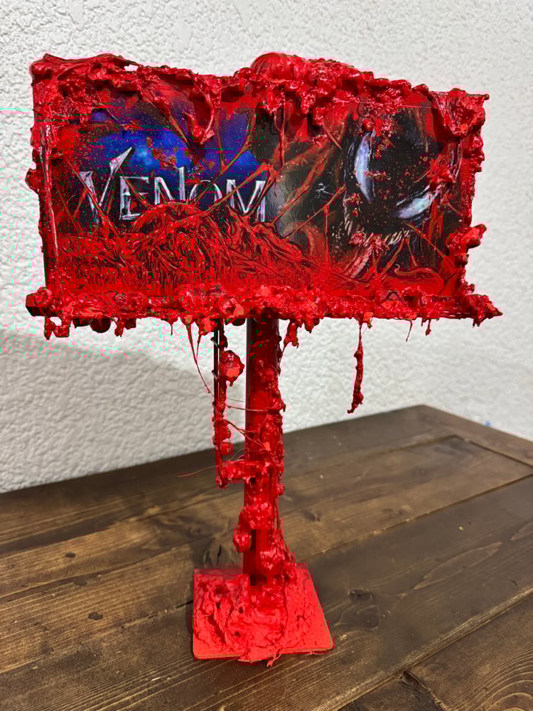 Mini metal billboard, double sided solid Billy! Used foam and painted with spray afterwards! One of a kind. Comes with a fat sticker pack of 10. Ship worldwide, shipping included