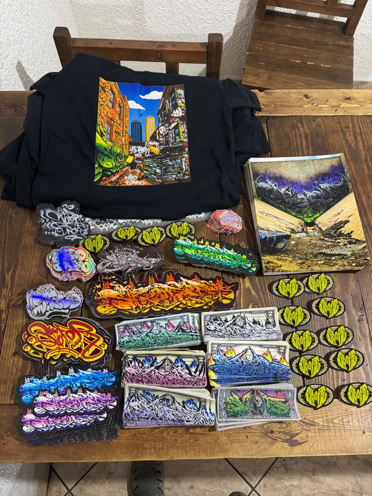 Skofer pack, this is one of a kind pack that I worked really hard on, a lot of time to trying to fit everyone in this shirt design. The Skofer Pack contains 10 stickers, a print, Wu-skofe pin and a limited design T-Shirt. Only making 55 packs limited drop.